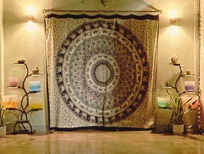 Our famous Full Moon Yoga classes are held in the yoga garden during the cooler months and in the Summer we switch to Glow in the Dark Yoga indoors!